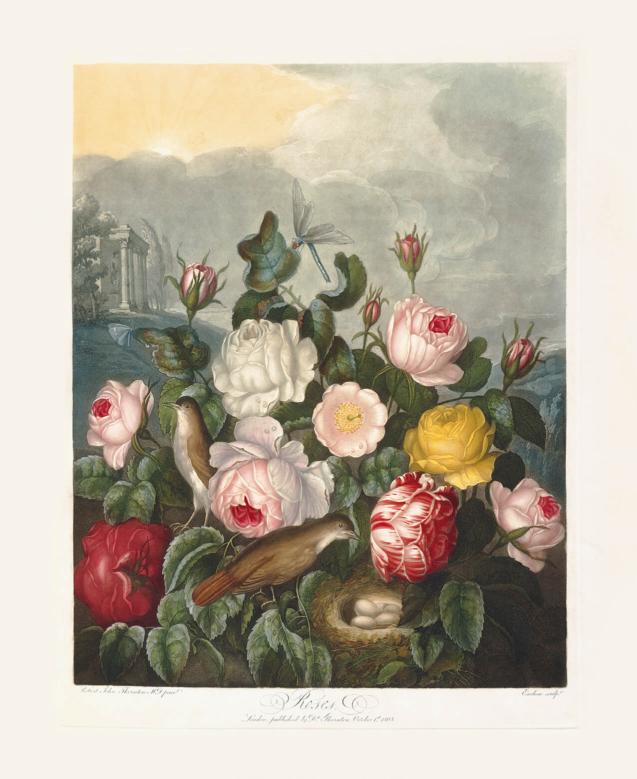 For New illustration of the sexual system of Carolus von Linnaeus, Thornton originally planned to issue 70 folio size color plates. In 1803, he opened a gallery in London where he exhibited his paintings and sold catalogs to gain publicity which he hoped would lead to subscriptions for his work.